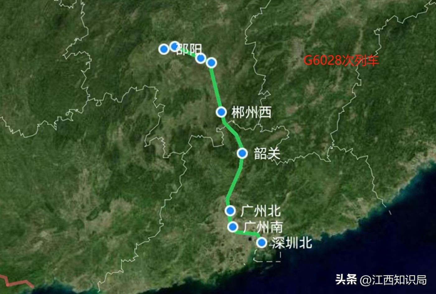 G6028次列车途经线路:沿广深港高铁,京广高铁,怀衡线(运营速度200 km/h)等运行。