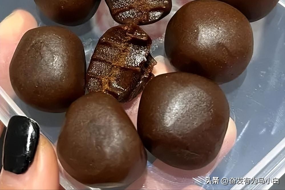 乌漆嘛黑的黑球球,也不知道是卖货大妈怎么搓圆的。但是就是很喜欢去买,记得是2分钱一个吧,酸酸的有一股子草味。问大妈,大妈说是山楂做的。