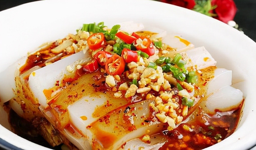 绿豆凉粉色香味俱全,清凉爽滑,为夏季风味食品。