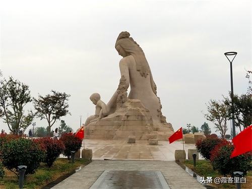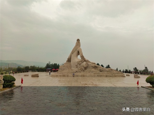 3、女娲神像及广场,我觉得是该景区的核心景观。女娲神像矗立于广场正中间,造型柔美而慈爱,非常高大,自下望之,仿佛高入云际。