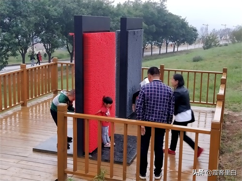 2、博物馆与女娲像之间,是个长长的通道,两边是景致不错的园林,其间还散布着一些游乐设施。
