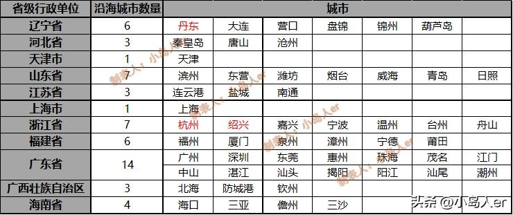 除去港澳台以外,剩余的11个省级行政单位中,大家知道一共有多少个沿海城市吗?是网上说的45个?52个?还是53个呢?