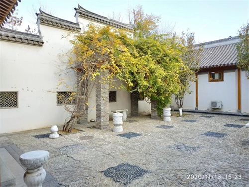 园子迎面的左侧有一小跨院,墙头是徽派的马头墙。