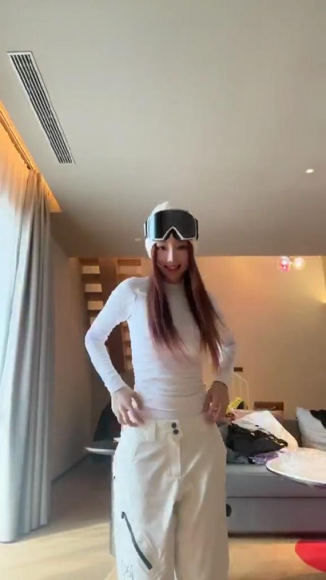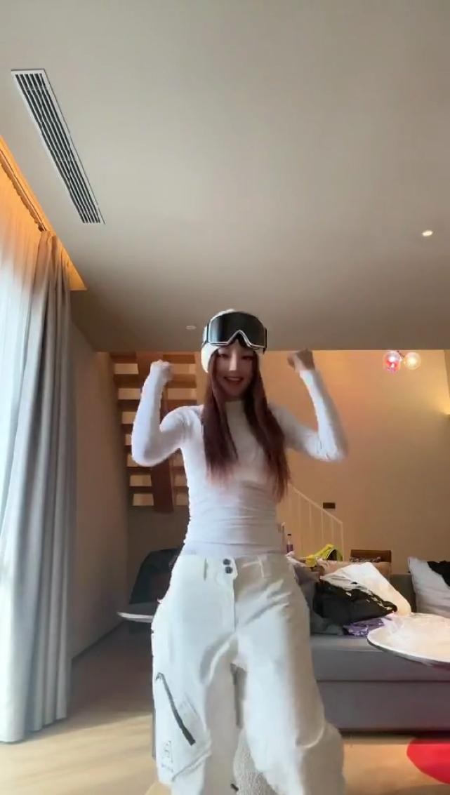 画面中的李小璐身穿白色的修身上衣,搭配同色系的宽松休闲裤,有意无意露出的吊带裤也显得特别的性感撩人,姣好的身材再度赢得了大家的称赞。她也一头柔顺的长发披肩,戴着白色的针织帽和滑雪专用的护目镜,看上去也一如既往的迷人。