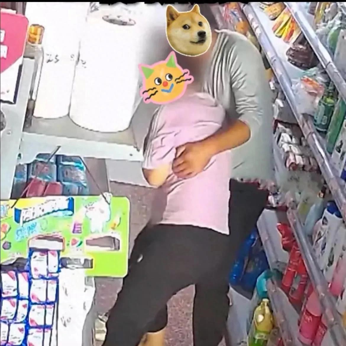 男子在超市戏耍留守村妇,一只手探索村妇下身,村妇半推半从