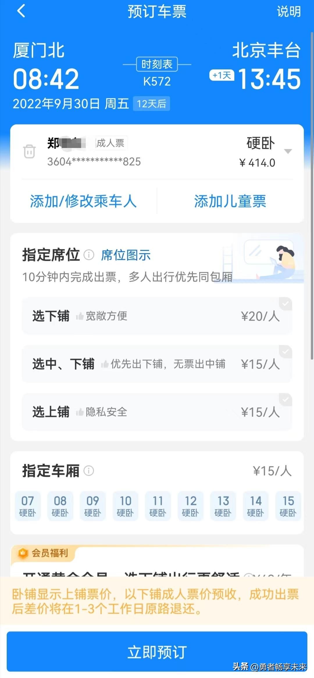 去哪儿旅行的收费标准:指定下铺收15元/人,指定车厢收8元/人,有下载APP的小伙伴们可自行去查看和比较哈。