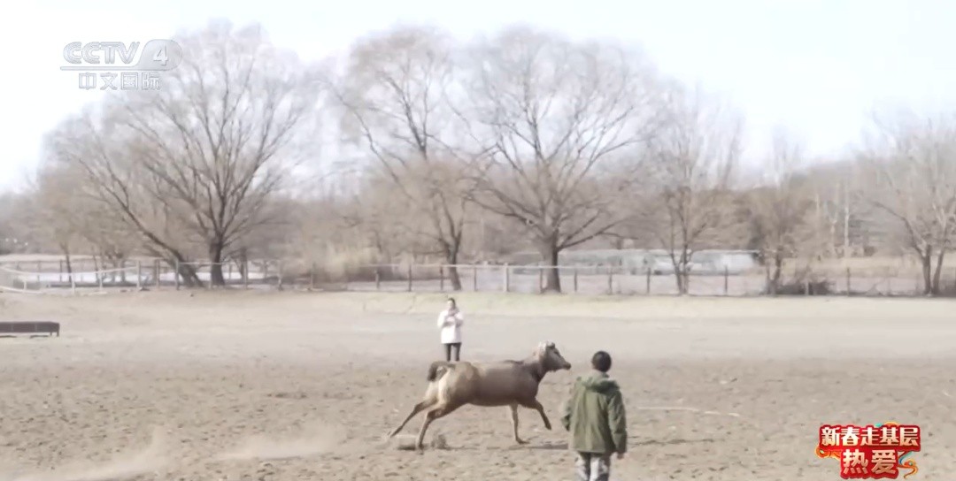 鹿角对雄鹿至关重要。在繁殖季节,雄鹿会通过装饰鹿角来吸引雌鹿的注意,并通过打斗来争夺交配权。而到了春节期间,正是雄性麋鹿脱角完成开始长茸的关键时期,鹿茸最快一天能长1.5到2厘米。由于雄鹿野性十足,打架时刚长出来的茸角极易受伤,甚至断裂导致大出血,程志斌需要时刻掌握鹿角的状况。此时,一头麋鹿突然离开了鹿群,径直朝我们冲了过来。