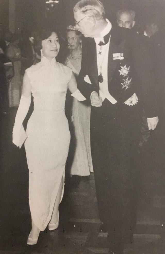 1957年,年仅35岁的杨振宁获得了诺贝尔物理学奖,这是杨振宁一生最高光的时刻。当年12月10日,杨振宁携妻子杜致礼参加了瑞典斯德哥尔摩诺贝尔奖颁奖仪式和晚宴。那天,杜致礼一身旗袍,身姿婀娜、光彩照人,端庄优雅,她立即成为现场的焦点。