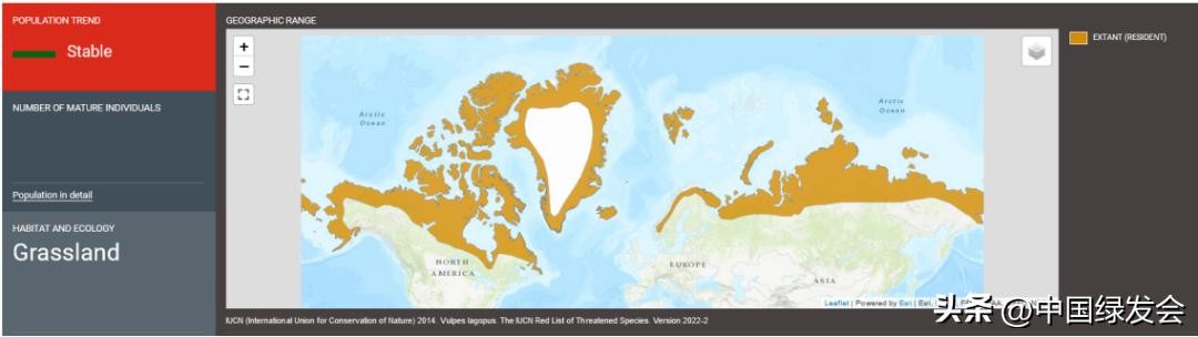 上图:北极狐的分布地理范围。来源:IUCN红色名录