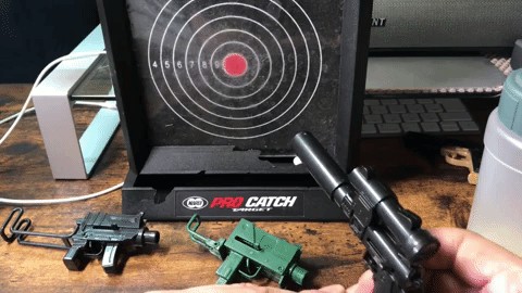 枪弹的选择马克汉姆也下了一番功夫,最后选择了我们前文提到的霰弹枪的铅弹,并将其中直径为0.180英寸的铅弹筛选出来重新包装作为BB弹枪的子弹。