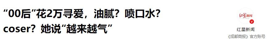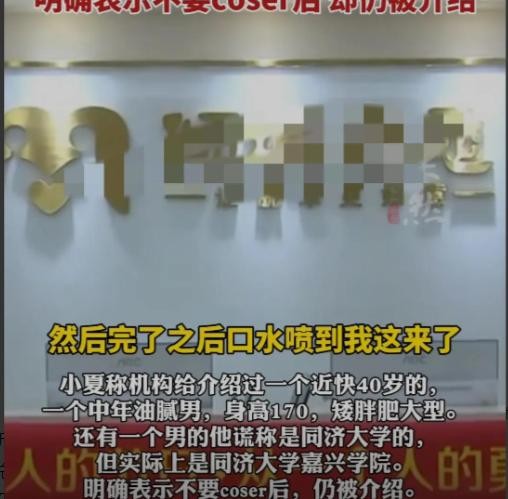 信息来源:“《成都商报》官方账号”——(23岁女研究生花2万寻爱要求为175+不胖不瘦 最多大五六岁婚恋公司却为其介绍40岁身高170的肥胖男性明确表示不要coser后却仍被介绍)