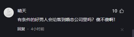 但是也有网友认为小夏的要求太高了:“大哥啊,有钱又帅单身,你不好找,他们机构也不好找啊!优质男生根本不会进入相亲市场,尤其是婚姻介绍所,能来相亲的男的有几个是正常的,自己找都比婚介机构的靠谱!”