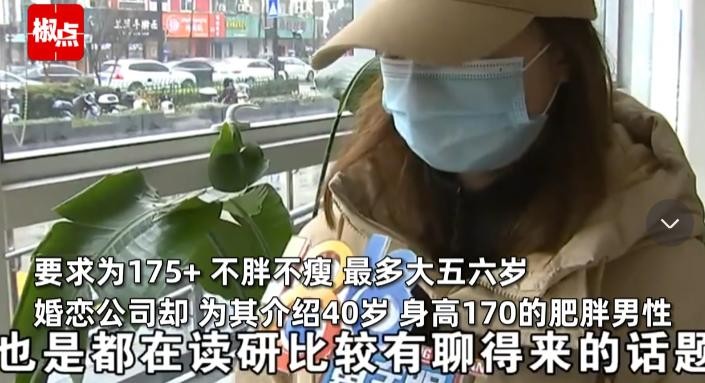 信息来源:“大众新闻·齐鲁晚报短视频官方账号”——(23岁女研究生花2万寻爱要求为175+不胖不瘦 最多大五六岁婚恋公司却为其介绍40岁身高170的肥胖男性明确表示不要coser后却仍被介绍)