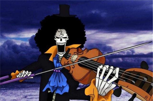 路飞最初出海的时候,就提到过要找一个音乐家,因为大海上漫长的航行实在无趣,必须要有音乐家带动快乐的氛围,直到莫利亚篇章,属于草帽团的音乐家布鲁克才出现。布鲁克也是一名剑士,不过与霸道刚猛的索隆相比,布鲁克的剑道更偏向于阴冷,这大概是布鲁克将剑术与黄泉果实融合之后发挥出的力量。