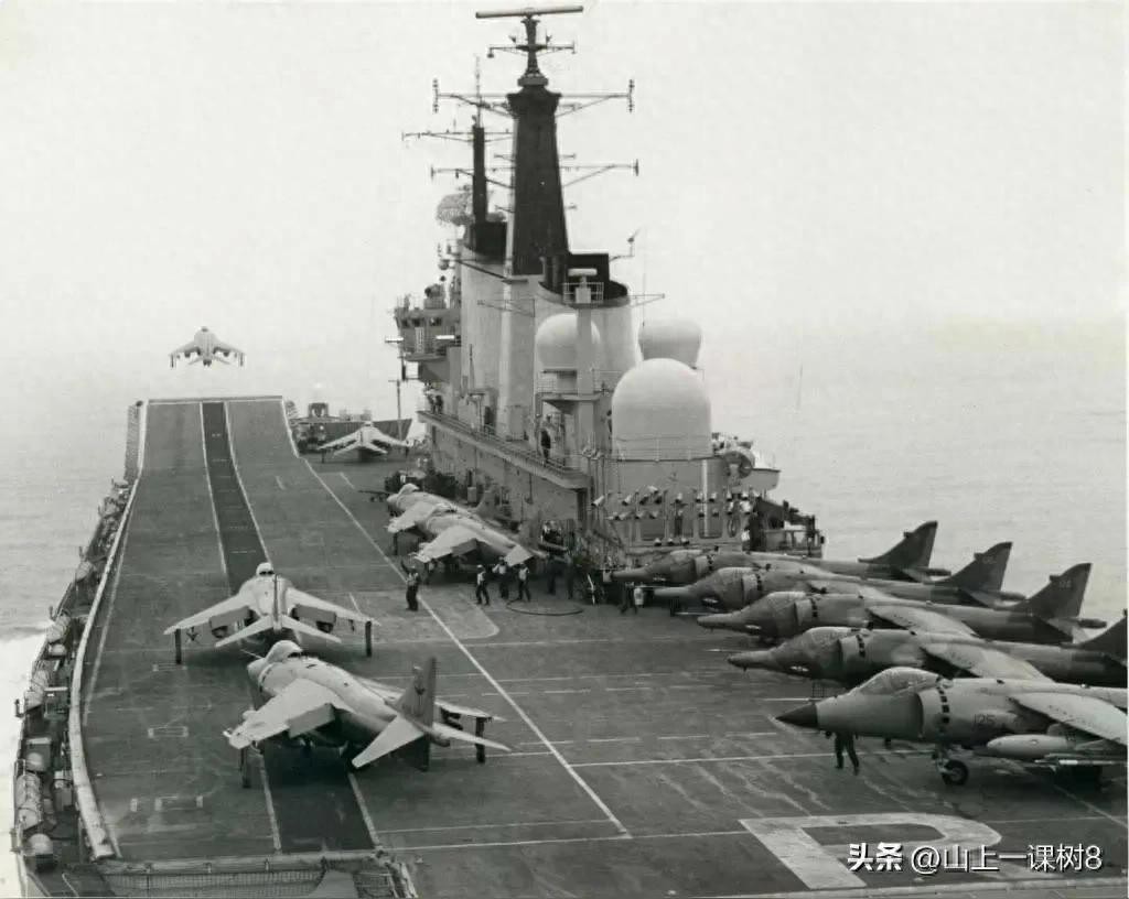 英国军队装备了先进的海空作战平台,如“鹞”式垂直起降战斗机、“谢菲尔德”号驱逐舰、“无敌”号航空母舰等。