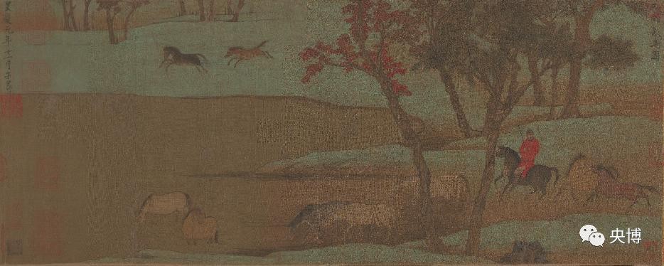 图 | 元·赵孟頫《秋郊饮马图》,绢本设色,纵23.6厘米,横59厘米 | 现藏于故宫博物院