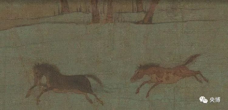 这幅画的左侧上部,两匹马正在追逐打闹。