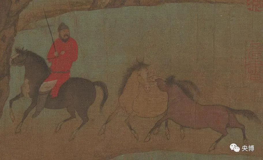 作这幅画时,赵孟頫已接近花甲之年。他擅长的人马图早已形神兼具,更加写实,还原生活。