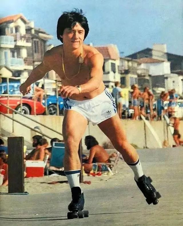 来到了海边,成龙就在海边的人形道上练旱冰,由于好久没练了,成龙滑着滑着突然一个“踉跄”,差点就撞到了一个女孩身上。