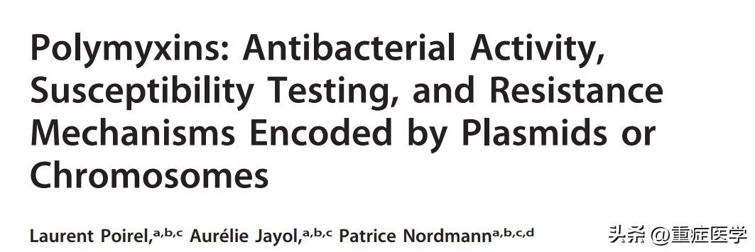 Poirel L, Jayol A, Nordmann P. Polymyxins: Antibacterial Activity, Susceptibility Testing, and Resistance Mechanisms Encoded by Plasmids or Chromosomes. Clin Microbiol Rev, 2017,30(2):557-596.
