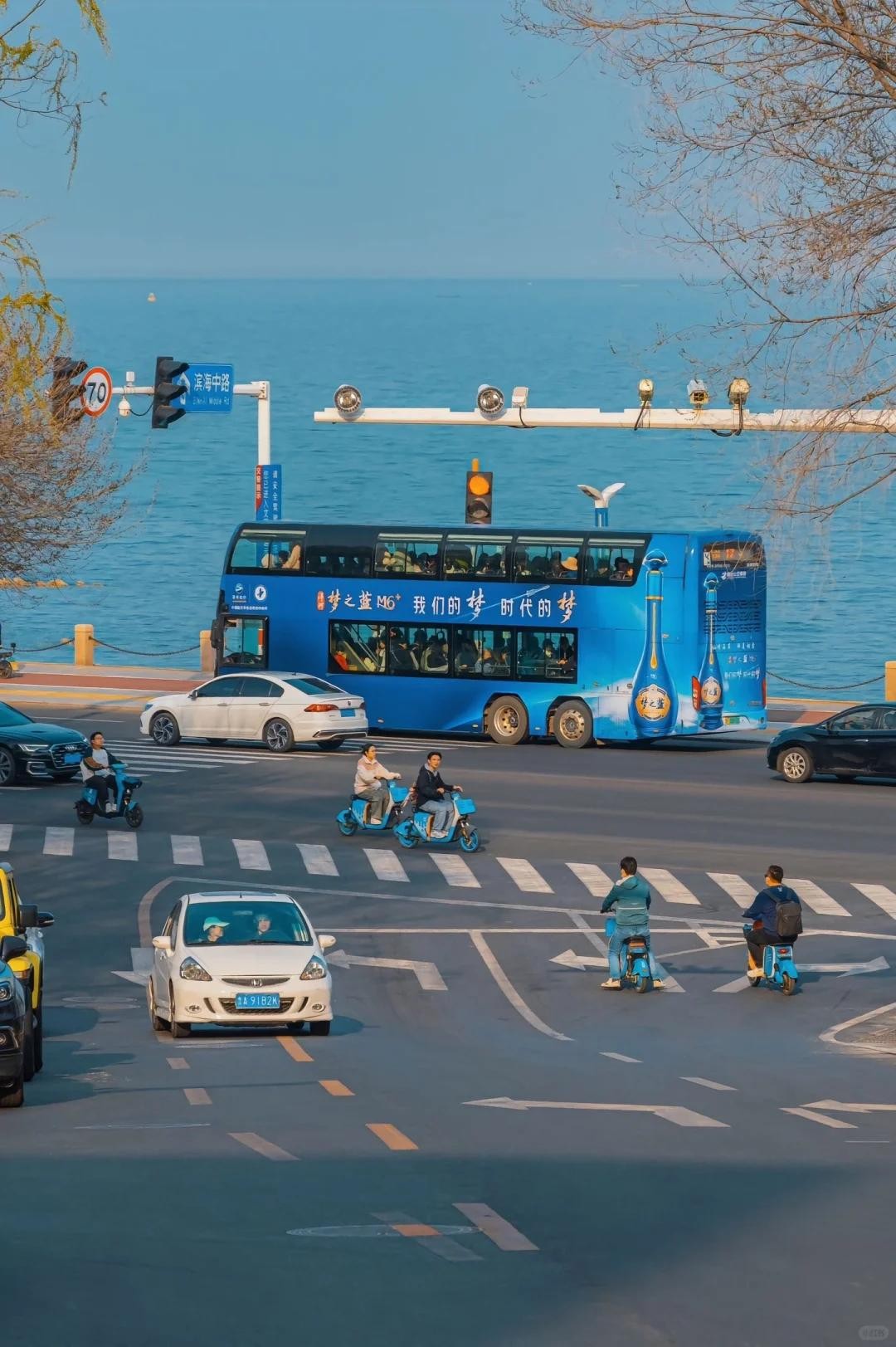 如果你来烟台,一定要给17路环海双层公交预留一个感受的时间,靠在床边,戴上耳机,一边听着歌,一边感受海边吹来的微风,真的超级浪漫~