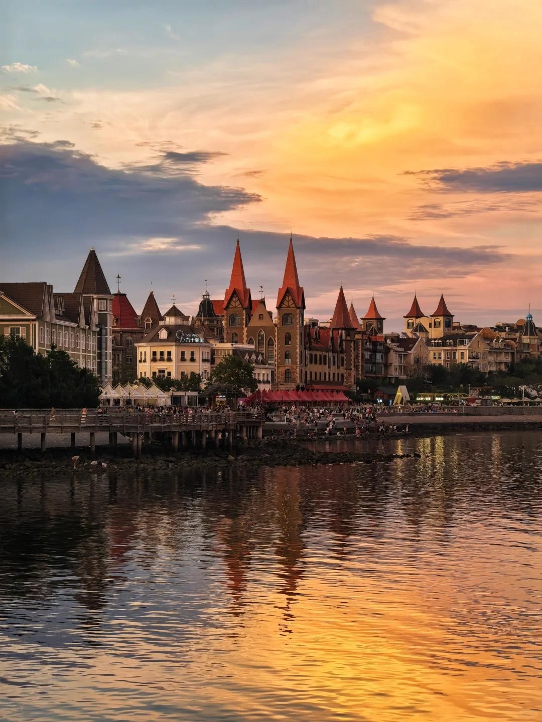 ·渔人码头站:欧洲风格建筑群、观海木栈道、宫崎骏同款海上铁轨、烟台海昌鲸鲨海洋公园