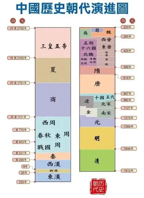 中国朝代顺序如下:夏、商、周【西周、东周(春秋、战国)】、秦、西汉、新朝、玄汉、东汉、三国时期(魏、蜀、吴)、晋(西晋、东晋)、十六国【五凉(前凉、后凉、南凉、西凉、北凉),四燕(前燕、后燕、南燕、北燕),三秦(前秦、后秦、西秦),二赵(前赵、后赵),一成(成汉),一夏(胡夏)】南北朝[南朝(宋、齐、梁、陈)、北朝(北魏、东魏、西魏、北齐、北周)]、隋、唐、五代(后梁、后唐、后晋、后汉、后周)、十国[前蜀、后蜀、吴、南唐、吴越、闽、楚、南汉、南平(荆南)、北汉]、宋(北宋、南宋)、辽、西夏、金、元、明、清、中华民国、中华人民共和国。