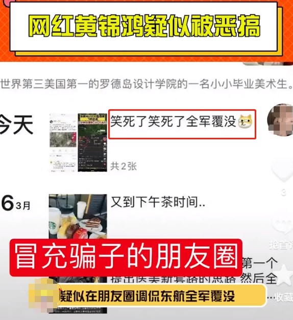 可在全国哀痛时,网上却有消息爆出,疑似网红黄锦鸿在朋友圈发文调侃东航全军覆没,当众拿灾难开玩笑,引发热议跟吐槽。认为其太过分,简直就是没人性,成为攻击对象。