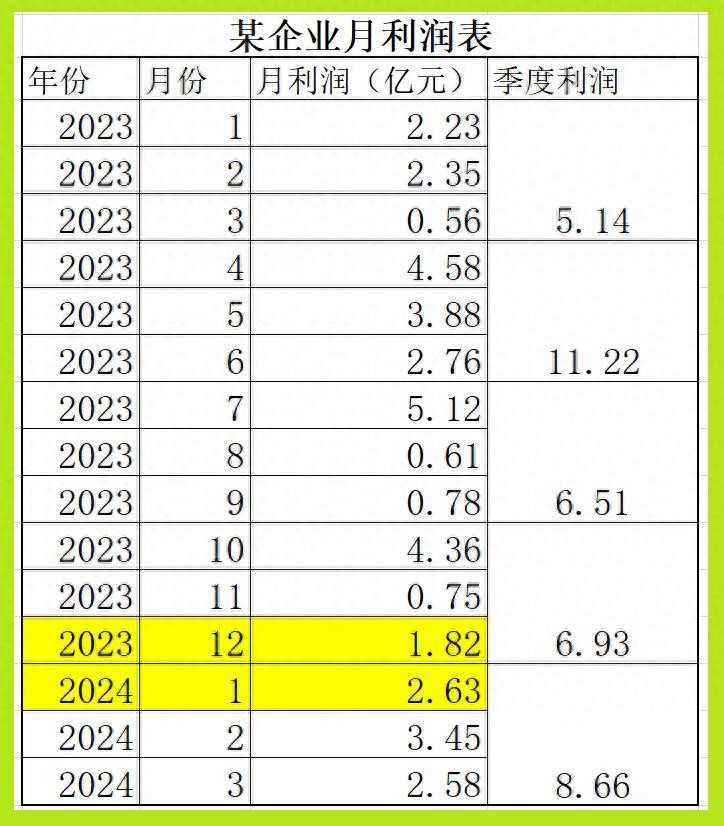 如上表,2024年1月份(利润),同比的就是2023年1月份;2024年的1季度,同比的就是2023年的1季度。
