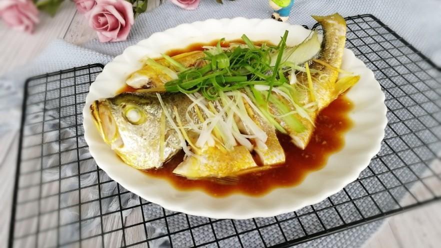 材料:一条大黄鱼;蒸鱼纳豆油40克;盐适量甜料酒少许植物油适量;葱、姜适量