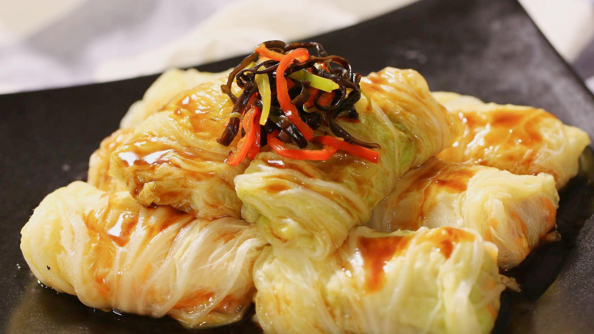 材料:白菜叶4张(去梗)、瘦肉200克、鱼汤一勺、牛奶100克、淀粉少许、面粉10克、泡发木耳50克、蒜苗2棵、火腿肉50克