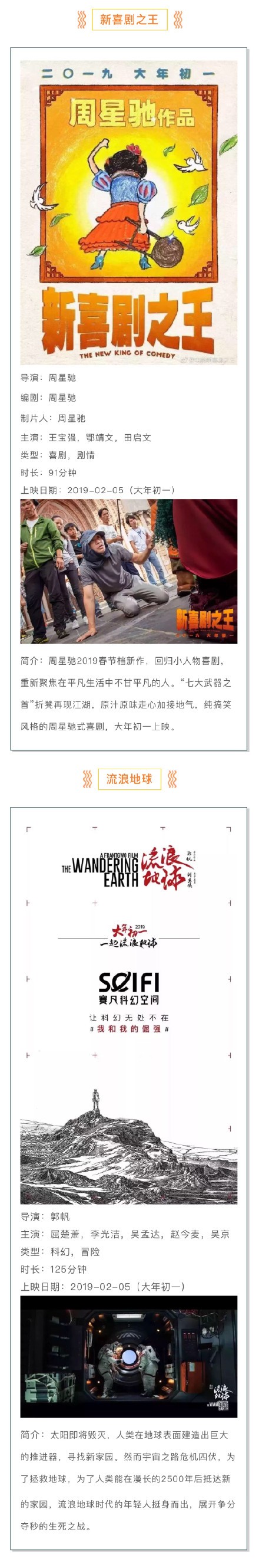 【2019春节档电影汇总!今年你打算看哪部?】 对于影迷们来说 春节就是一场电影的盛宴 而今年的春节档电影可谓是“神仙打架”! 喜剧、科幻、犯罪等题材应有尽有 在大年初一就已经挤爆排片了 一起去提前了解一下 2019年春节档电影