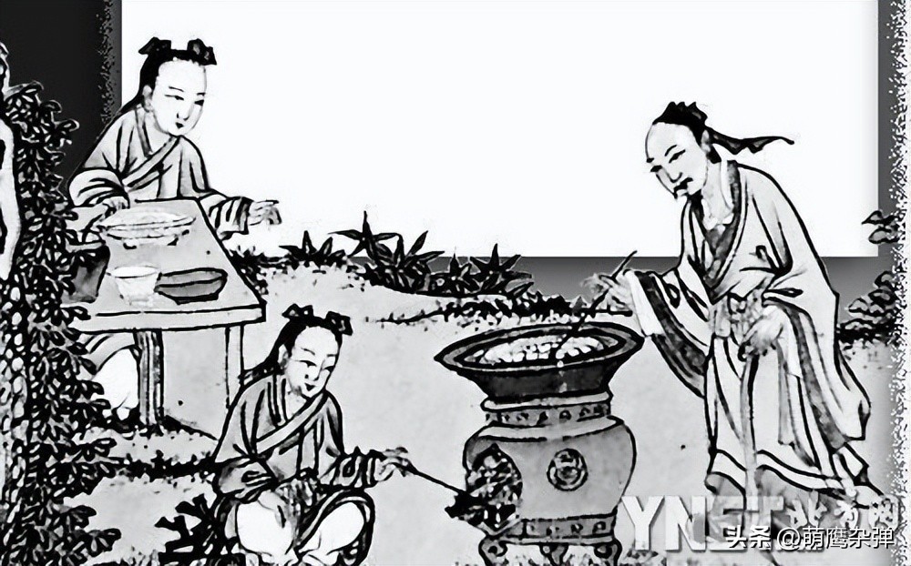 有一天,正好碰上他母亲身体不舒服,孝顺的刘安就想着让母亲也喝豆浆滋补一下,于是他吩咐仆人给母亲送一碗豆浆去。谁知仆人在经过炼丹炉时被吸引住了,津津有味地看着炼丹,一时之间竟忘了自己要做的正事。看了一会儿,碰巧炼丹者正要填料,仆人一时慌乱,没注意手中端着的豆浆碗,手一撒,豆浆都泼到了炉旁供炼丹的一小块石膏上。