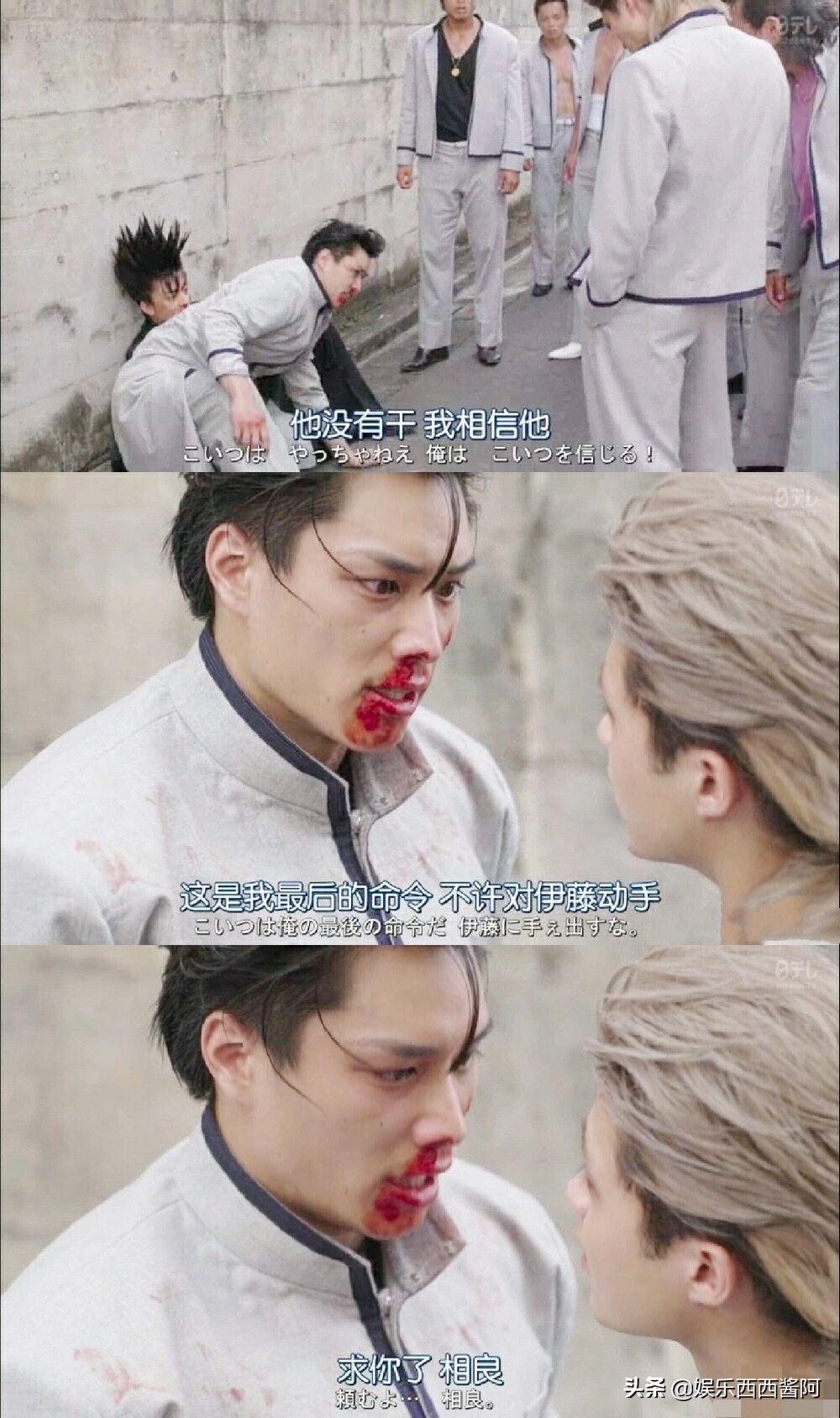 这点其实在剧中体现了。第一次是从背后偷袭今井,拿一根大粗棍子朝着今井后脑勺狠狠打过去,今井血再厚也扛不住这么一下子啊。真是太卑鄙无耻下流了。还有一次相良和伊藤打,但是打不过伊藤,这时京子来保护伊藤,结果相良就抓了京子还威胁伊藤跪下求饶。然后伊藤真的跪下磕头了! (小编看到这里还掉了一滴泪 ,真的有点感人了)。还有最后相良还是用同样的手段绑架了理子,还用烧红的铁棍让理子毁容为要挟,让三桥认输。利用要挟女人这种卑鄙手段来获得胜利,真是卑鄙小人惯用的手段,渣男无疑了。