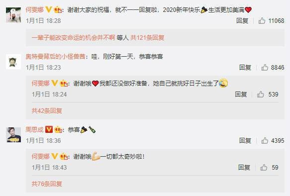 何雯娜在社交平台写道,“2020.01.01,平安顺产,欢迎我们的小公主,爸爸妈妈爱你喔。”