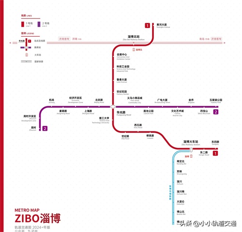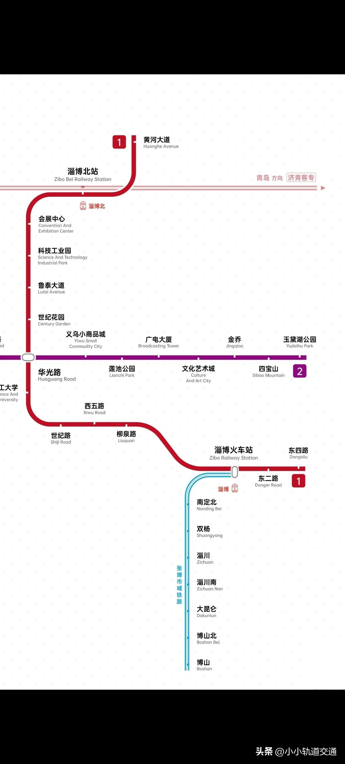 2号线起于周村,止于玉黛湖公园,途经周村开发区,淄博机场,经济开发区,义乌小商品城等地,线路呈东西走向,实现了机场地铁的无缝换乘。这两条线也是未来淄博轨道交通的基本骨架,能满足大部分市中心市民的出行,也能方便前来游玩的旅客,十分便利。