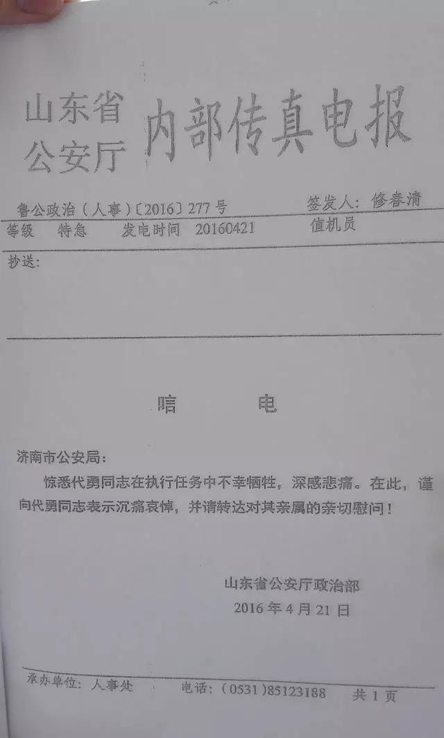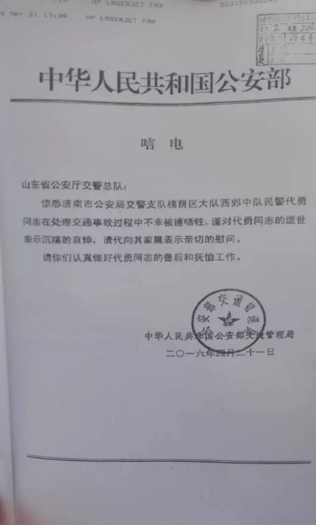 (公安部交管局,省公安厅政治部分别发来唁电)