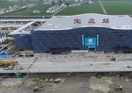 昨天下午,记者在高邮界首的高铁站房施工现场看到,“高邮北站”四个红色的字已经立在了站房顶部。高邮交通部门的相关负责人介绍,连淮扬镇铁路高邮北站站房外装工程已顺利完工,是扬州段境内四座新建高铁站房中首个完成外装施工的。目前,工作人员正在抢抓工期,进行站房内装的施工。