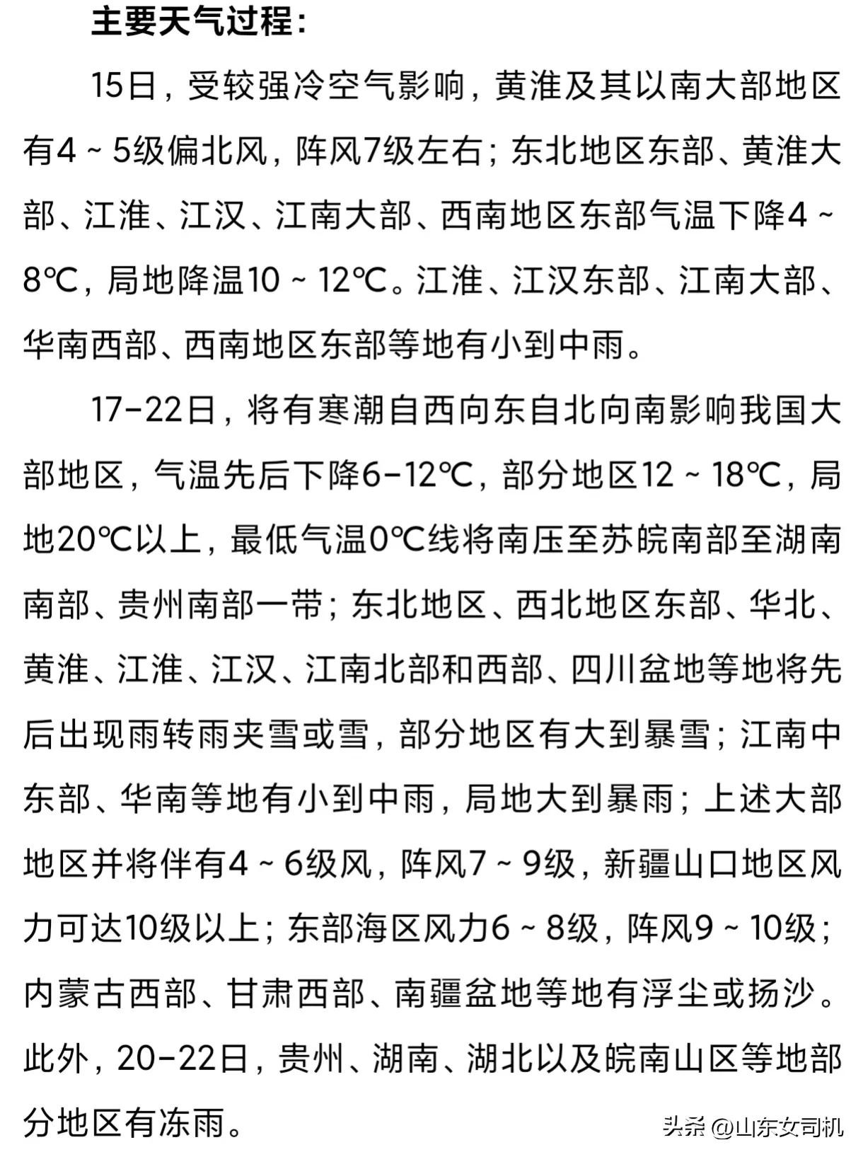 看这最新发布的预报图,东北地区、山河四省以及江淮先后都有大雪暴雪,长江中下游沿江省份或许还有冻雨。由于时间跨度还比较长,肯定还会有调整。请有出行需要的关注天气变化合理安排行程。未来十天,大部分地区气温将由偏高转为偏低,最后附一张中央气象台中期天气资讯: