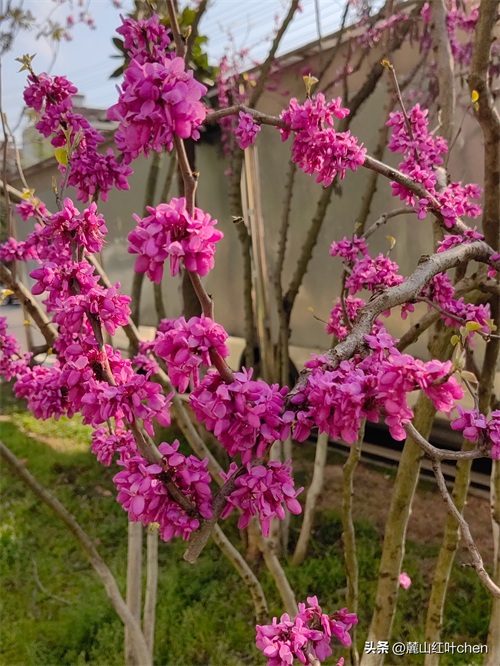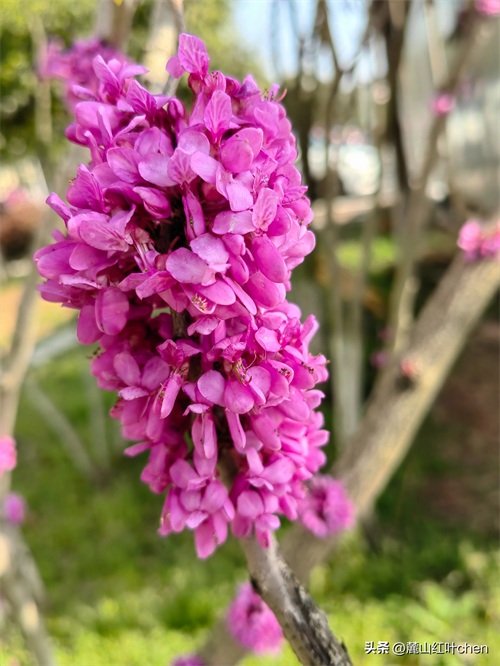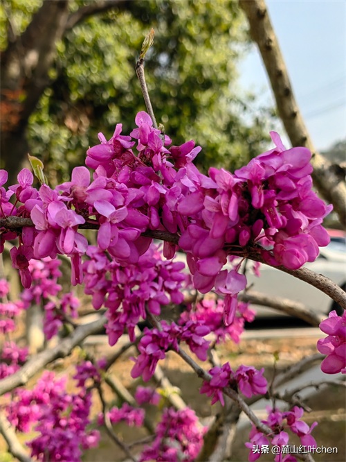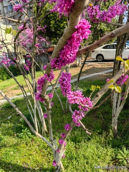 紫荆(Cercis chinensis Bunge),豆科紫荆属,落叶乔木或灌木。紫荆的花紫红色或者粉红色,2—10余朵成束,簇生在老枝和主干上,被称之为老茎生花,花通常先于叶开放,但是嫩枝或者幼株上的花则和叶子同时开放。原产于中国。