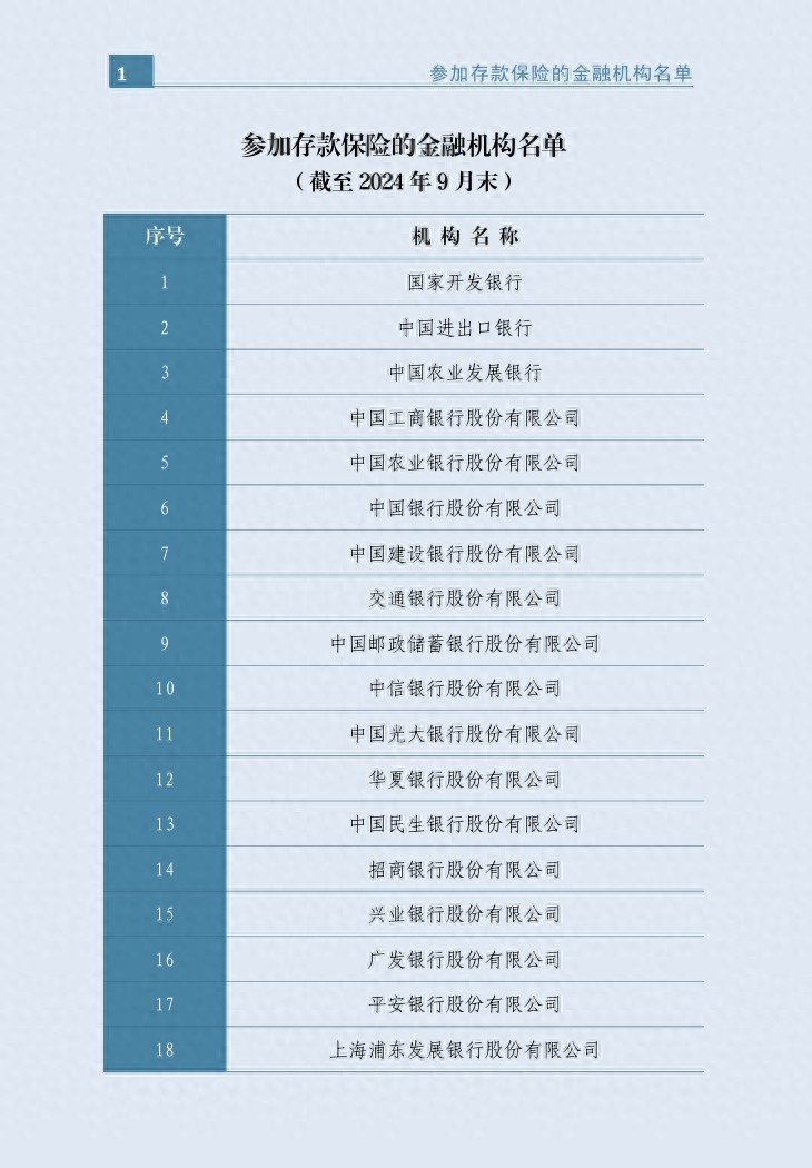 参加存款保险的金融机构名单(截至 2024 年 9 月末)
