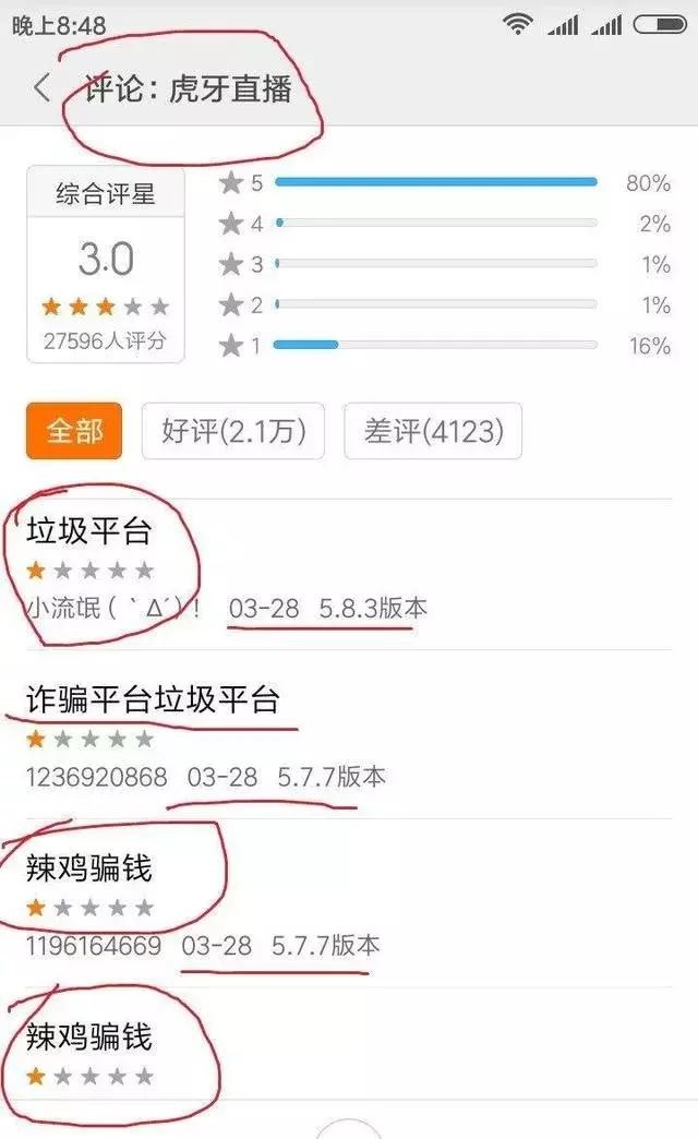 但是上当的水友们就不乐意了,纷纷给虎牙APP刷起了差评,诈骗TV,成了?