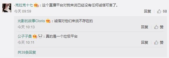 网友们也表示,“这个直播平台对我来说已经没有任何诚信可言了。”“诚信对他们来说不存在的”