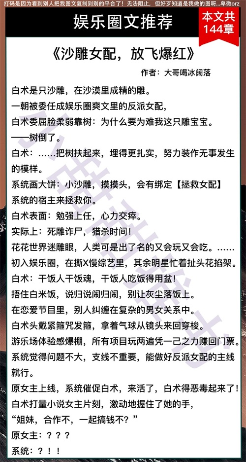 2.《沙雕女配,放飞爆红》作者:大哥喝冰阔落
