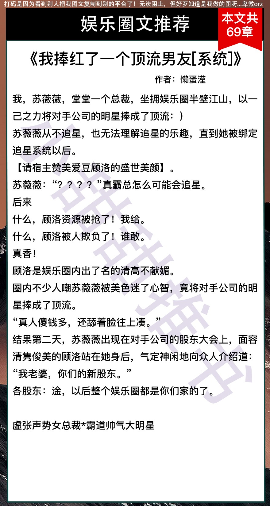 4.《我捧红了一个顶流男友[系统]》作者:懒蛋滢