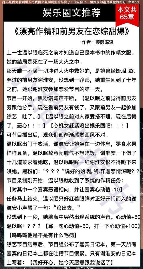 3.《漂亮作精和前男友在恋综甜爆》作者:蒹葭深深