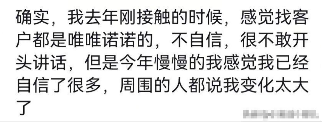 4. 初入销售界,可能胆儿小,但经验多了,自信心自然就上来了,这可是个良性循环。